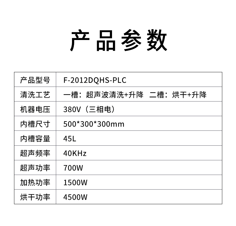 F-2012DQHS-PLC | 45L 700W PLC控制双槽超声波清洗机(支持定制)