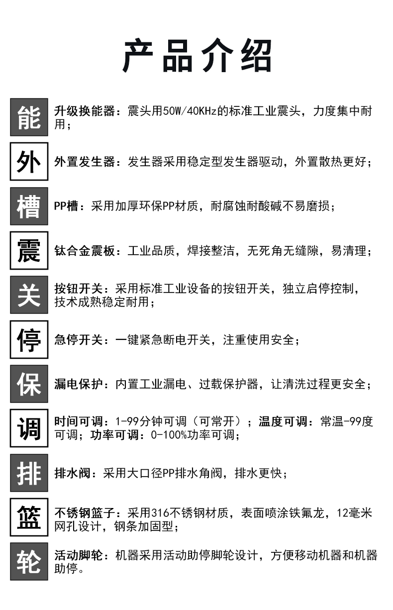 - 超声功率:3600W(可调)