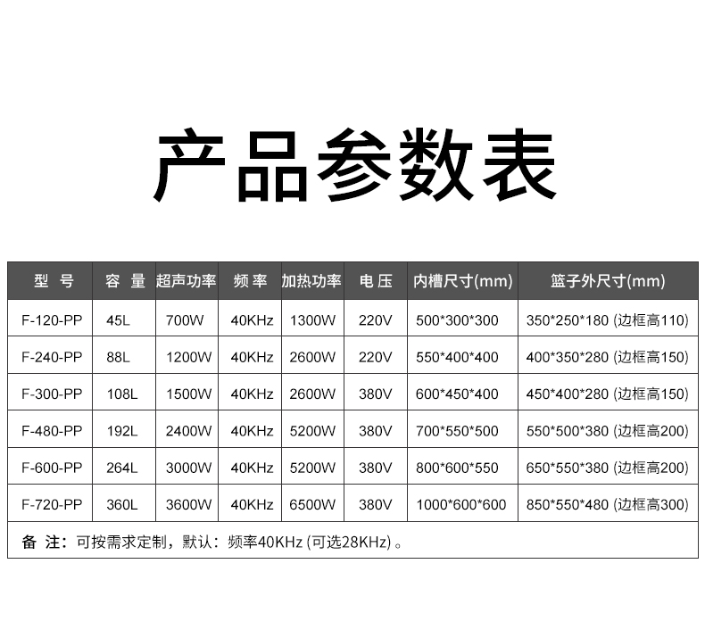 F-720-PP | 360L 3600W PP槽超声波工业清洗机