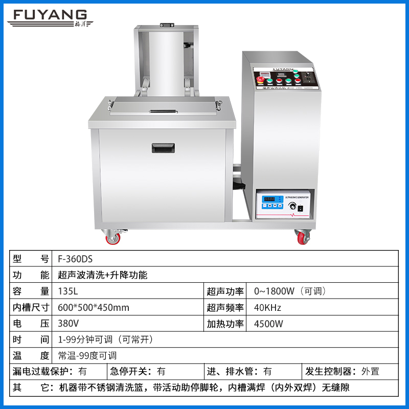 F-360DS | 135L 1800W 工业单槽升降式超声波清洗机 支持定制