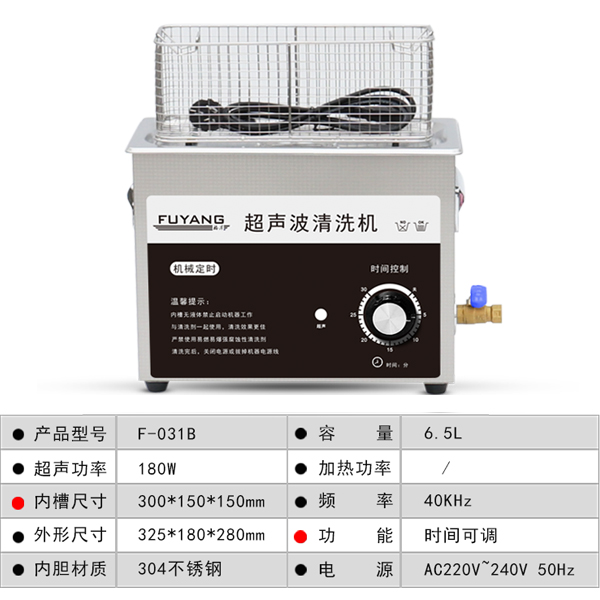 福洋6.5L超声波清洗机 | F-031B | 时间可调 360°全方位超声波清洗