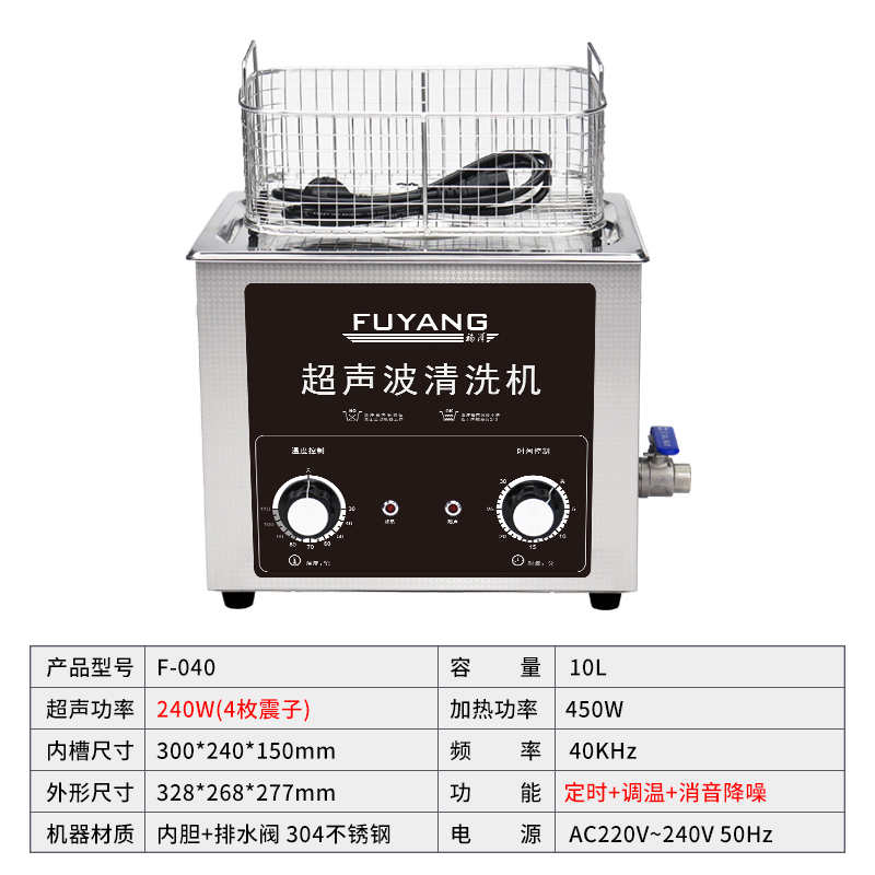 福洋10L超声波清洗机 | F-040 | 定时调温 304不锈钢内胆
