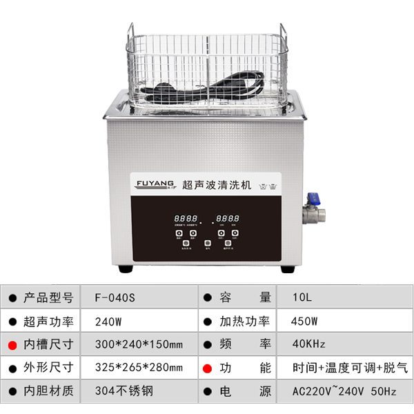 福洋10L超声波清洗机 | F-040S | 一键脱气 数码显示 支持定制