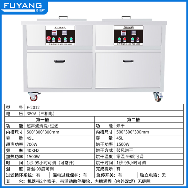 F-2012 | 45L 700W 双槽带过滤循环超声波清洗机