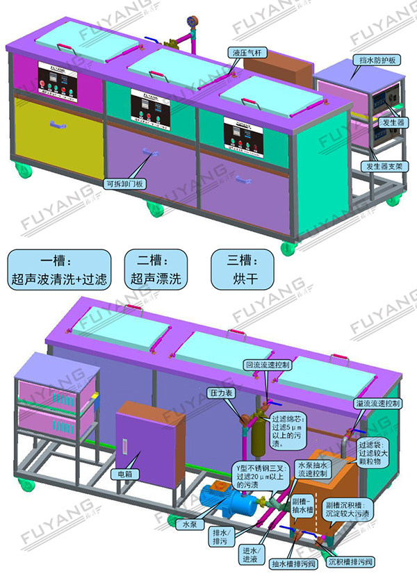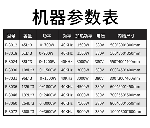 F-3031 | 96L 1500W 工业级三槽超声波清洗机