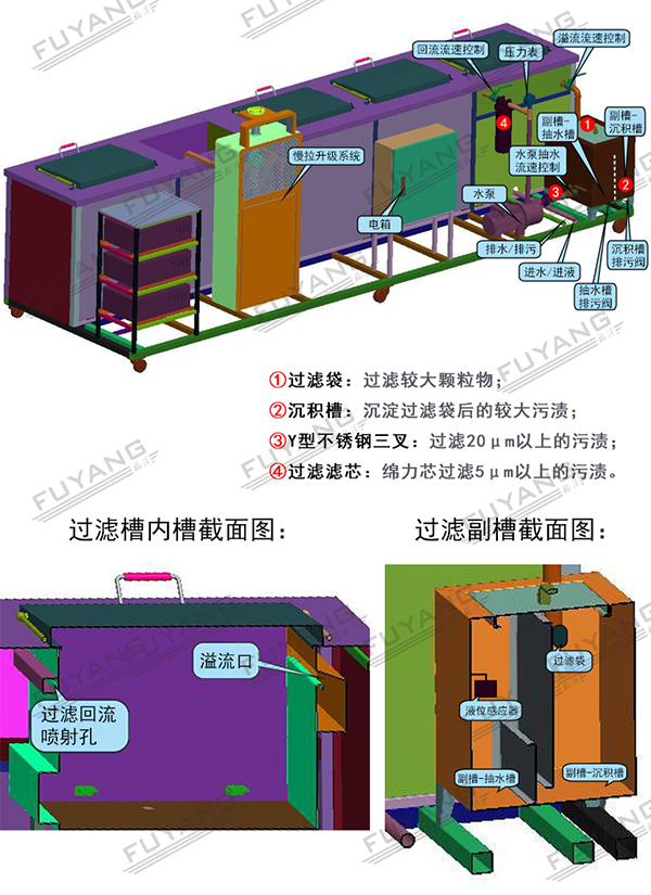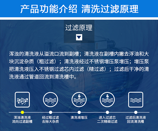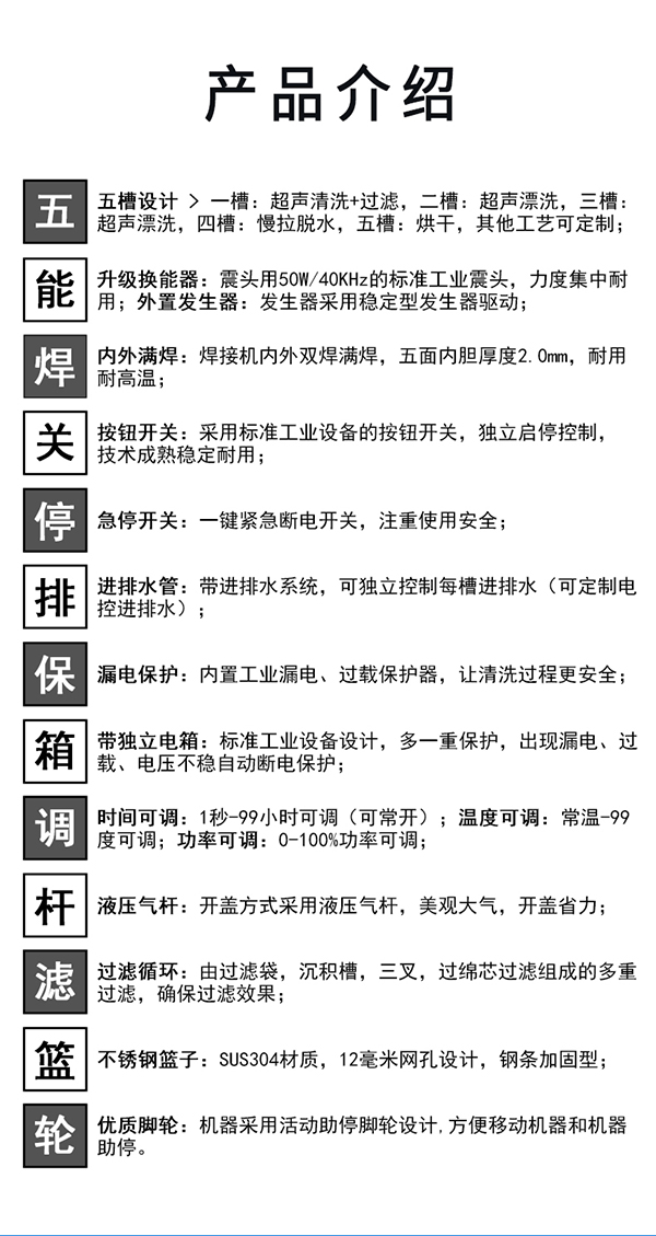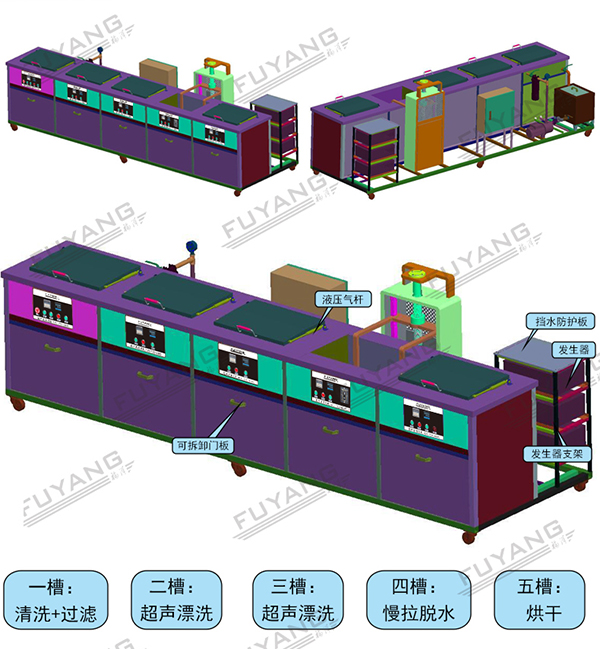 F-5060 | 264L 3000W 工业五槽超声过滤漂洗烘干机