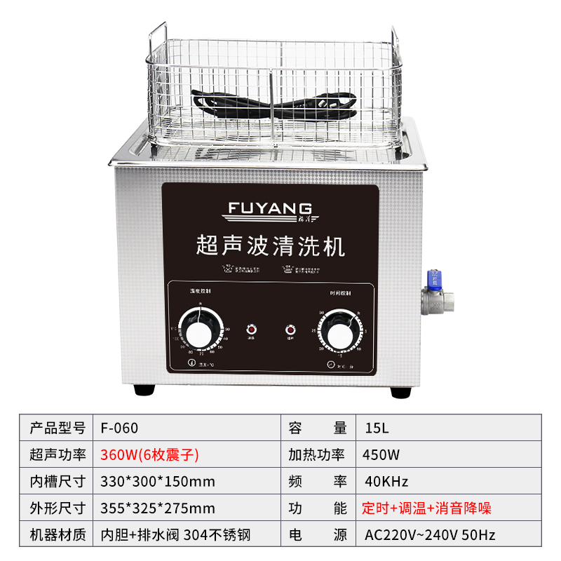 福洋15L超声波清洗机 | F-060 | 定时调温 多功率可选 机械旋钮操控
