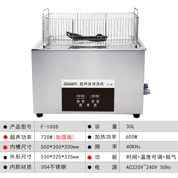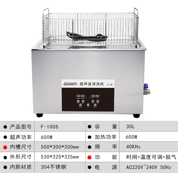 福洋30L超声波清洗机 | F-100S | 数码显示 可一键脱气 麻将超声波清洗机