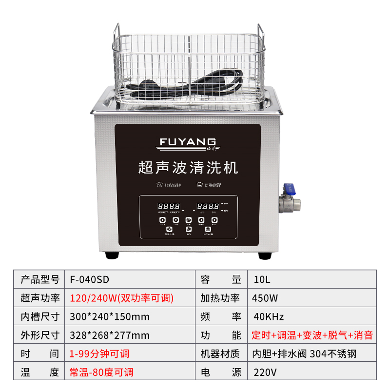福洋10L超声波清洗机 | F-040SD | 一键定时 数码显示控制