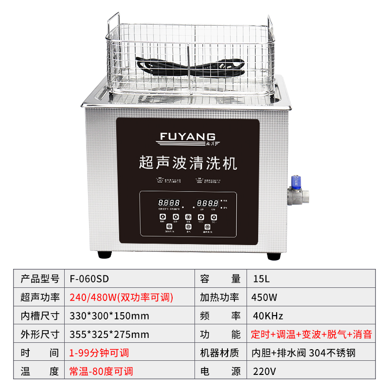 福洋15L超声波清洗机 | F-060SD | 商用工业用 多功率版本