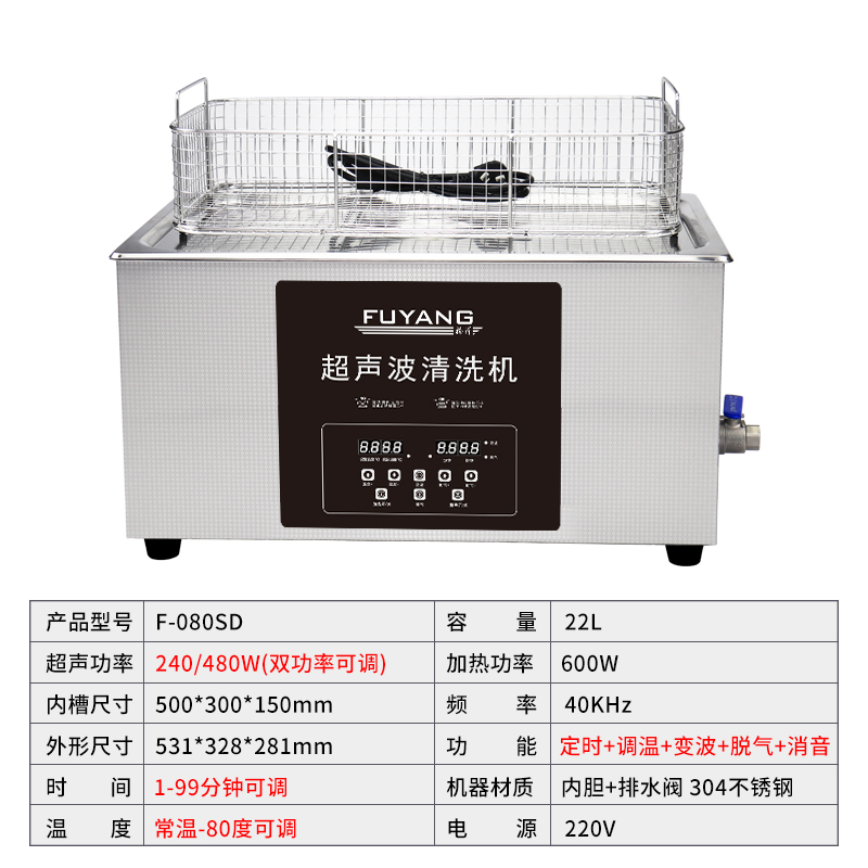 福洋22L超声波清洗机 | F-080SD | 一键脱气 工业超声波震头