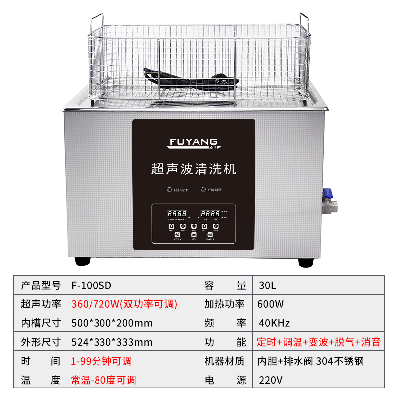 福洋30L超声波清洗机 | F-100SD | 变波脱气 多功率可选