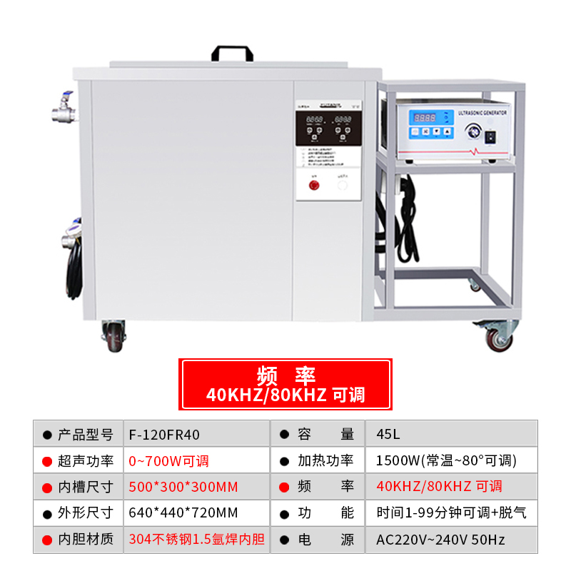 F-120FR40 | 40/80KHz 超声波双频清洗机 45L(功率可调)
