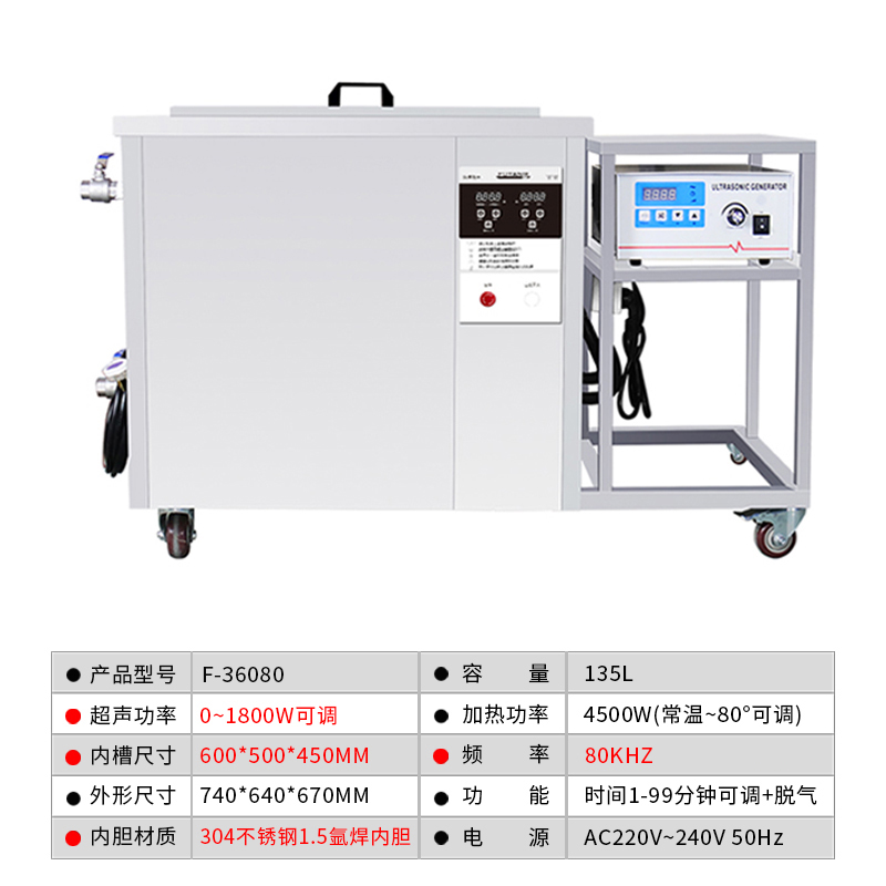 F-36080 | 80KHz 工业超声波高频清洗机 135L(支持定制)