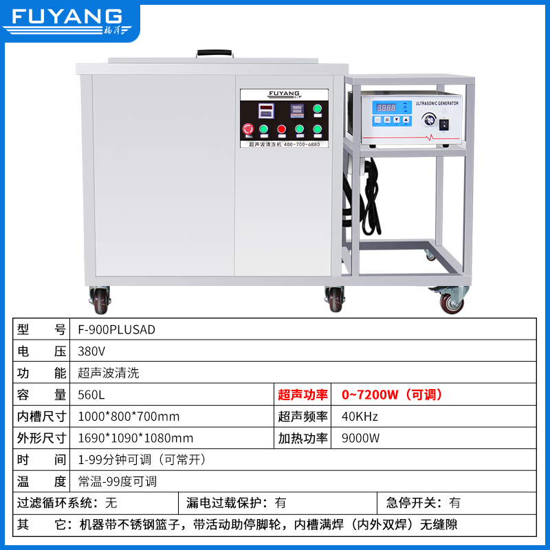F-900PLUSAD | 560L 7200W 单槽大功率工业用超声波清洗机(支持定制)